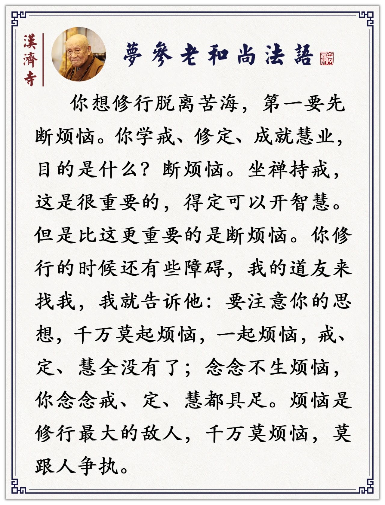 烦恼,能使你善品流失。咱们说“一念瞋心起,百万障门开”,那像“瀑流”,形容词,“瀑流”就形容词,说你一念的、发一念的嗔恨心——那一念贪爱心也如是——形容瀑流。就是菩萨说法,断众生的瀑流,唯有转他人,故而说法。那声闻、独觉说法呢?为了自己。他所相不同,声闻、缘觉也给众生说法,他不是断众生的烦恼,是断自己的烦恼。那菩萨摩诃萨化度众生的时候,不分众生,不分众生的男相、女相,什么富贵相、贫穷相,一律不分,只是为除无量无边众生的烦恼病,给他说法。“烦恼病”,众生把烦恼不但没当成病,当成享受。现在我们所认为的,现在我们的思想、我们的想法,把烦恼当成菩提。这烦恼有深、有浅。深呢,是没有佛的教导,没有对比,没有显示,根本不知道什么是烦恼。如果咱们依着佛所教导的、教授的方法来分辨,我们才知道什么是烦恼——这个都加个“病”字,为什么加个“病”字?害病我们都知道,生病啊,生了病痛苦,生病跟健康就不同了。没把烦恼当成病。有很多的事,烦恼是我们自己去找烦恼。找烦恼,思想的想、口里的说、身体的行动。有时候我们自己烦恼,说,“谁会去找烦恼?”不会的。但是你所求的财、色、名、食、睡,这五种在你生活当中,一天是不断的,这个是烦恼。整个世上的人为了贪财,昼夜辛辛苦苦地奔忙劳碌。为什么?为了求财。求到财又去做什么,财能作什么?备办五欲。而衣、食、住、行,都要有钱,所以必须得有钱。忙穿的,忙吃的,行动啊。我看我们到台怀镇赶车订车票,赶飞机订飞机票。这些个是烦恼。不是烦恼啊?他在忙这些事的时候,他并没有认为这是烦恼。你在普寿寺,你看不见。你出了普寿寺大门,走没好远,到台怀镇看,那就是烦恼场所,烦恼场所!这烦恼本身就是病。那菩萨给这些众生说、无量无数的众生说,是断他们的病。不要生烦恼,不要无事生非,这是找烦恼,这样给他说法。声闻、缘觉,是自除烦恼病,也给人说——他回向的目的不同,他回向是自己。这是一种。“菩萨摩诃萨,为断众生诸蕴”,“诸蕴”就是五蕴。五蕴,色、受、想、行、识的烦恼、习气——加个习气。说你粗烦恼断了,还有细烦恼。一切众生粗烦恼也没断。菩萨不但断众生的烦恼,还要断众生的烦恼习气。进一步说,令他都能够断。“令他”是指什么说的呢?一切众生。说断烦恼得有个方法,所以给他们说法的目的,就是告诉他们断烦恼的方法。而且是你要想断烦恼,你得先认识烦恼——什么是烦恼?例如:咱们每天穿衣、吃饭,天气冷了,穿的衣服要多穿几件,这是正常的。这里头就含着烦恼。我自己现在就感觉到,感觉到穿着衣服时候,自己跟自己生烦恼。感觉这衣服不合适,穿上又很笨重。因为都是夏天、秋天过惯了,那现在开始入冬了,拿这件衣服穿一穿,不高兴,再换一件。因为什么呢?当初出家时候、小和尚时候,只有那么一两件衣服,没有什么想法。当老和尚了,人家送的衣服多了,又挑这件挑那件。这个本身就是烦恼,生活都是在烦恼当中。怎么样断它呢?“衣服,尘劳也,唯恐不勤”,那你要断它;“持诵、礼拜,胜业也”,把持诵、礼拜跟你衣、食、住、行转换一下。菩萨他说法令一切众生粗相断了,还有习气,让他把习气也断了。
